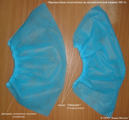 XH-31 специализированная автоматическая машина для изготовления бахил из нетканного полотна (спанбонд, ламинированный спанбонд).Машина оснащена частотным конвертером для пошаговой регулировки скорости, настройки сваривания пакета с помошью устройства «Ultrasonic» (ультразвуковая сварка).