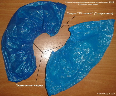 XH-31P специализированная автоматическая машина для изготовления одноразовых бахил из полиэтилена (PE&CPE). В машине применяется частотный шаговый конвертер для регулировки скорости и комбинированная сварка (ультрасоник + термическая). Машина автоматически поддерживает заданные параметры и корректирует их при отклонениях.Принцип действия: