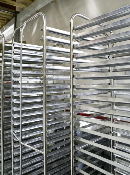 На каждый ярус тележки-шпильки помещается 2 лотка, общая загрузка тележки составляет 50 лотков.
