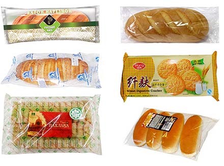 Горизонтальная упаковочная машина DCWB-450 предназначена для упаковки: хлеба, пирожков, лотков со сладостями и печеньем, сосисок, колбас, сыра, колбасок, штучных памперсов и прокладок, халвы, печенья, булочек, творога и др. штучных продуктов и предметов.
