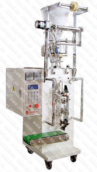 Упаковочное оборудование DXDK-80CH для фасовки и упаковки чая, сыпучих и гранулированных продуктов в 3-х или 4-х шовные пакеты "саше". Может использоваться как бюджетный вариант чайного фасовочного автомата в однокамерный пакет из фильтр бумаги без функции крепления ярлыка на нитке.Описание: