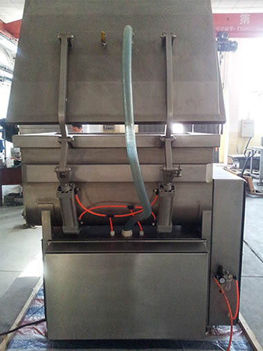 Вакуумная фаршемешалка ZKJB-600 предназначена для приготовления фарша путем перемешивания измельченного мяса с другими компонентами. Можно смешивать не только мясные фарши из мяса разных сортов, но также рыбные фарши, овощные рагу, творог, масло. В процессе перемешивания добавляются шпиг, специи, соль, комплексные добавки и другие ингредиенты. Все соприкасающиеся с продуктом детали выполнены из нержавеющей стали.Прочная станина и дежа. В деже установлены два вала, выполненных в виде лопаток, расположенных лопастями по касательной к спирали. Валы фаршемешалки установлены на подшипниках, что значительно повышает надежность и долговечность этих узлов. Вращение шнеков возможно в разных направлениях. Привод каждого шнека осуществляется при помощи отдельного мотор-редуктора через цепную передачу.